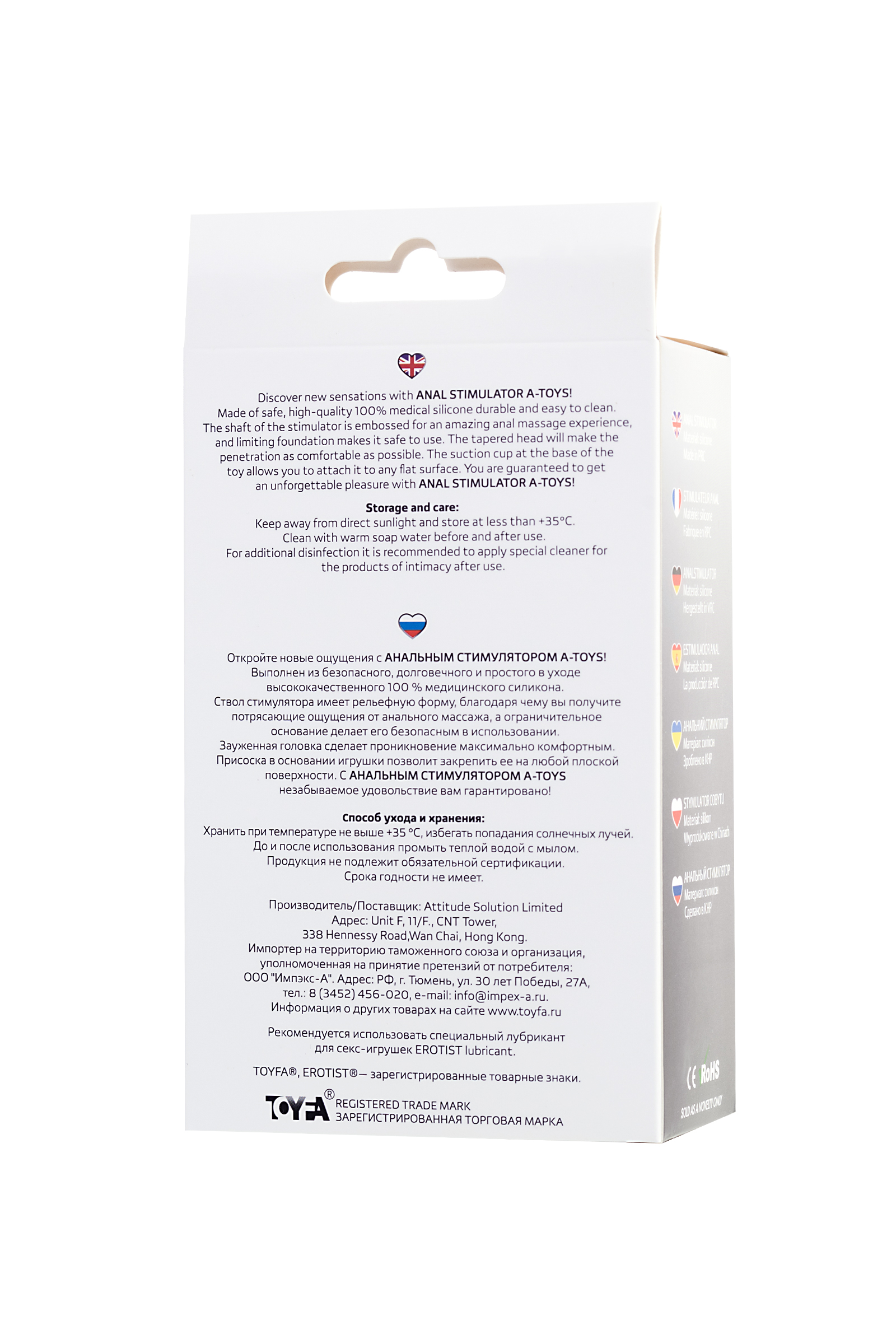 Откройте новые ощущения с анальным стимулятором Тойфа А-Тойс! Она выполнена из безопасного, долговечного и простого в уходе высококачественного 100 % медицинского силикона. Ствол стимулятора имеет рельефную форму, благодаря чему вы получите потрясающие ощущения от анального массажа, а ограничительное основание делает ее безопасной в использовании. Зауженная головка сделает проникновение максимально комфортным. Присоска в основании игрушки позволит закрепить ее на любой плоской поверхности. С анальным стимулятором A-Toys незабываемое удовольствие вам гарантировано! Общая длина – 14 см. Рабочая длина – 11,5 см. Макс. диаметр – 3,1 см.Рекомендуем использовать до и после применения - дезинфицирующее средство для игрушки, чтобы обеспечить длительное скольжение и комфорт интимных отношений, рекомендуем использовать анальную смазку на водной основе. Хранить при температуре не выше 35 градусов, избегать попадания прямых солнечных лучей. Перед хранением необходимо хорошо просушить