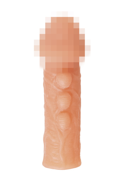 Увеличивающая насадка с фантазийным рельефом в виде пупырышек от KOKOS открывает новые возможности для взаимного удовольствия и воплощает фантазии о внушительном размере пениса. Увеличенный размер и объем полового члена добавляет мужчине уверенности в своих сексуальных возможностях. Дополнительная стимуляция партнерши для яркого и насыщенного оргазма. Увеличение продолжительности полового акта у мужчины - задержка эякуляции, и наращивание темпа приближения оргазма у женщины. Реалистичная насадка на пенис - необходимый элемент для вашей сексуальной игры, если вы хотите максимально удовлетворить свою партнершу и сделать ваш секс незабываемым. Насадка придает дополнительный объем и длину половому члену. Благодаря значительному размеру мощной головки зона G и вход во влагалище получают усиленную стимуляцию. Особенный рельеф в виде мягких пупырышек и многочисленных вен по всему стволу насадки деликатно ласкает чувствительные зоны. Дополнительный объем дарит то самое чувство наполненности, увеличивая поток возбуждения. Мужчина тоже будет ощущать стимуляцию за счет давления стенок влагалища на пенис. Для идеальной посадки по длине пениса используйте губчатую вставку, которая находится внутри насадки, подрезав ее до нужной длины. Не забудьте надеть презерватив в этом случае. В основании есть отверстие для мошонки, с помощью которого вы можете надежно зафиксировать насадку на пенисе и не ограничивать себя в активных движениях. Супер эластичный и нежный материал быстро принимает температуру тела, отлично тянется, сохраняя при этом прочность. Долговечность использования при соблюдении правил хранения и ухода за насадкой.Насадка сделана из высококачественного безвредного для человеческого организма материала, который прошел необходимые тестирования и сертификацию.Рекомендуем использовать до и после применения - дезинфицирующее средство для игрушки, чтобы обеспечить длительное скольжение и комфорт интимных отношений, рекомендуем использовать смазку на водной основе. Для бережного хранения материала пересыпать пудрой для игрушек. Хранить при температуре не выше 35 градусов, избегать попадания прямых солнечных лучей. Перед хранением необходимо хорошо просушить