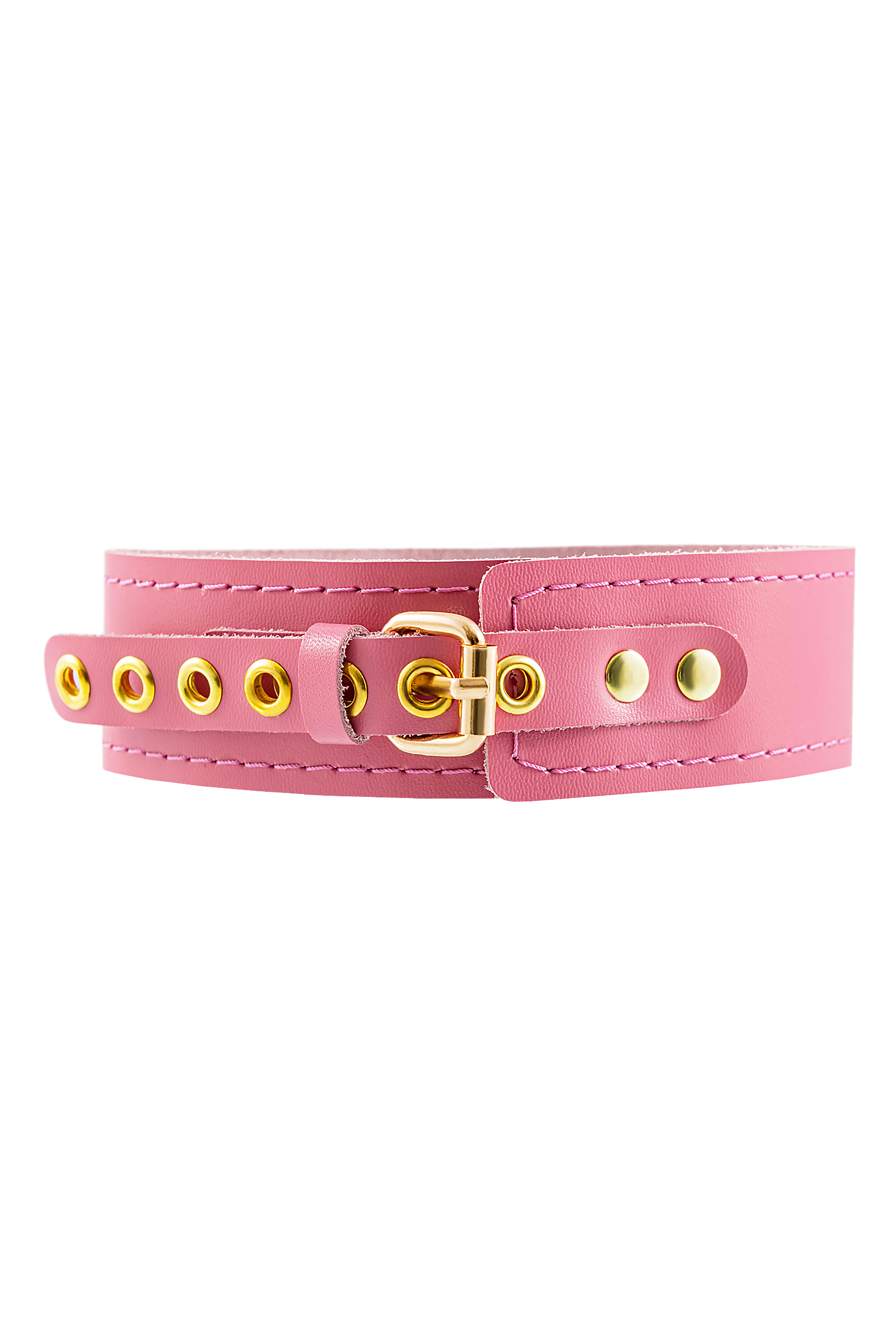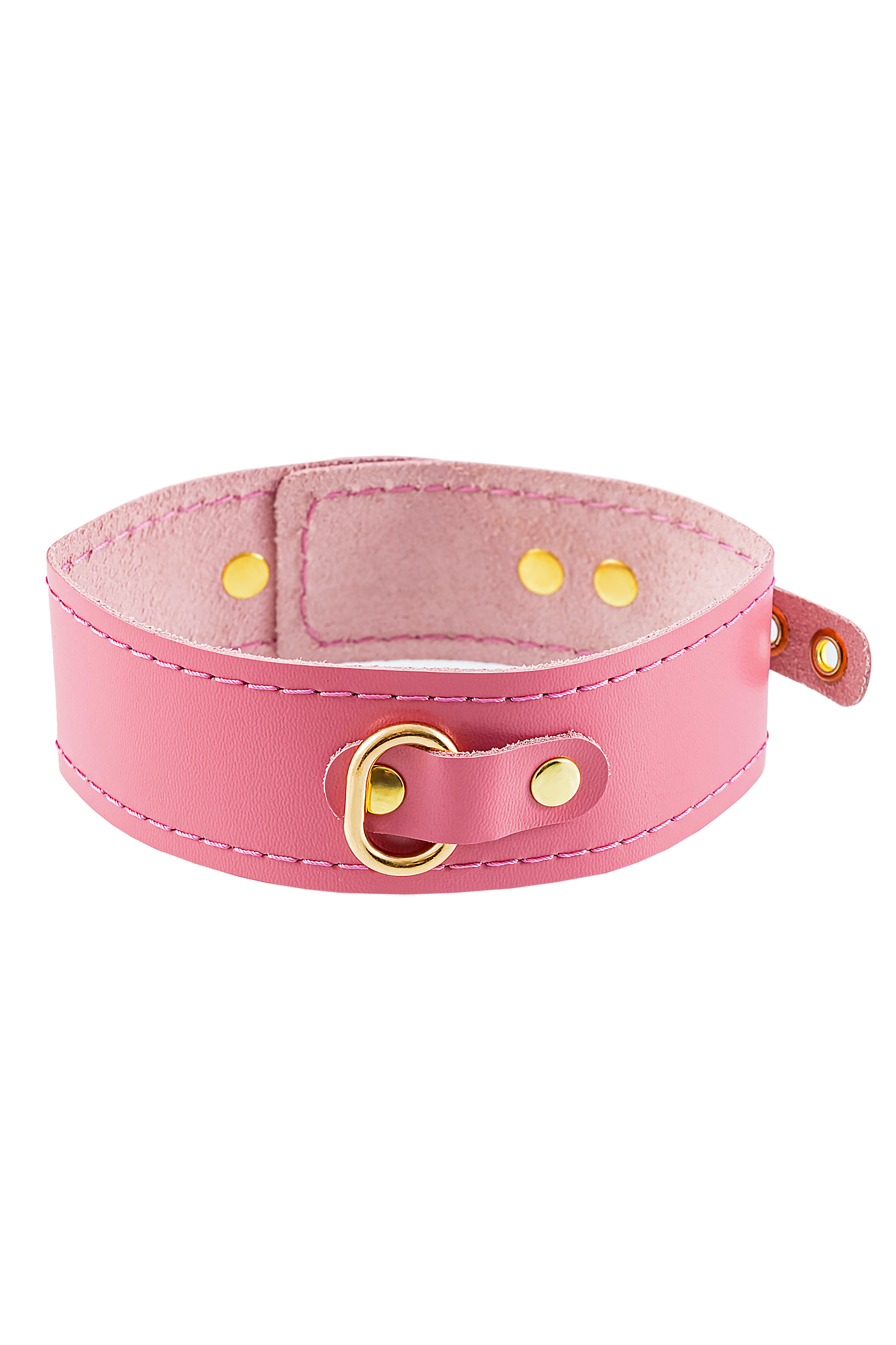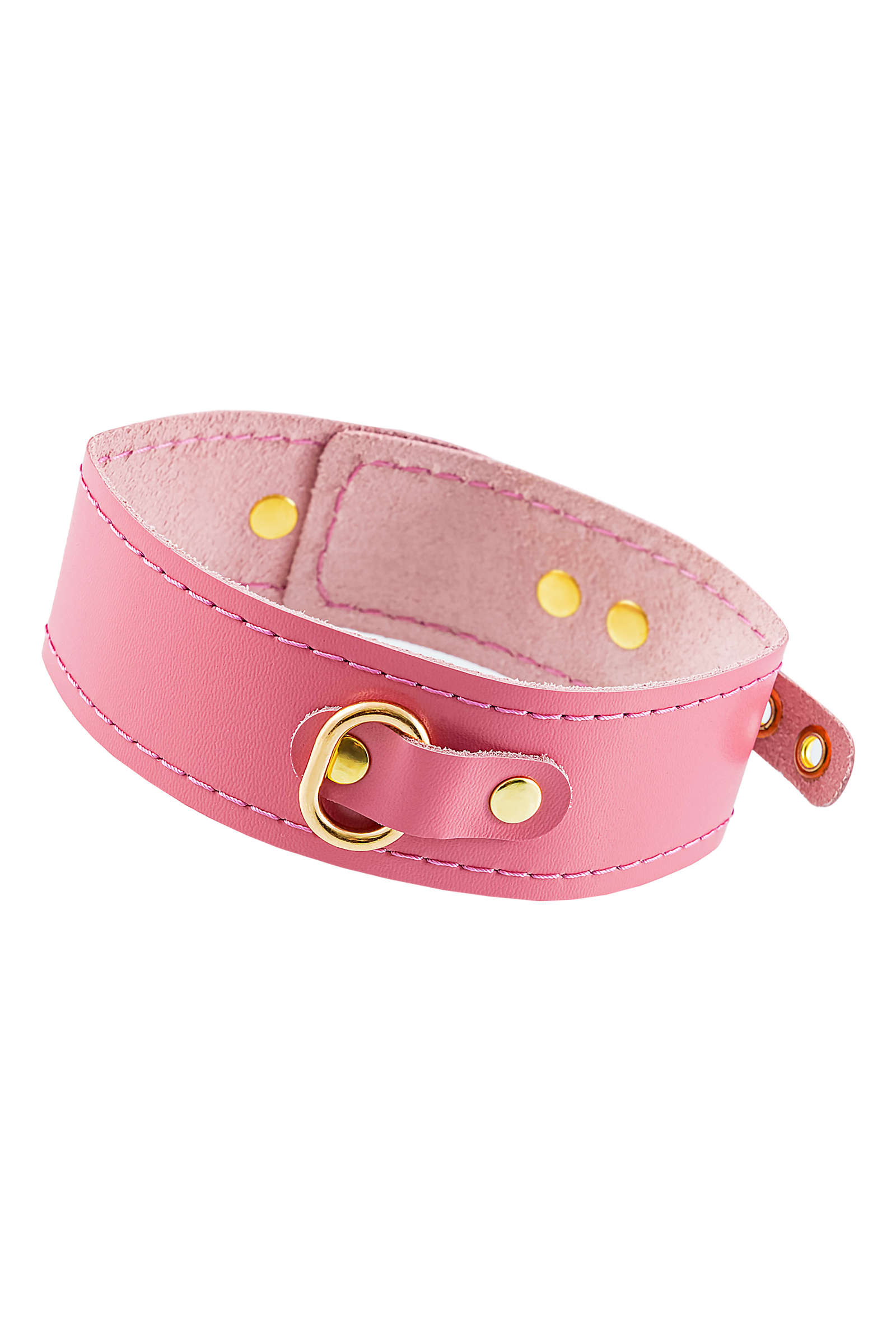 Ошейник Pecado BDSM, однослойный с прошивкой, натуральная кожа, розовый