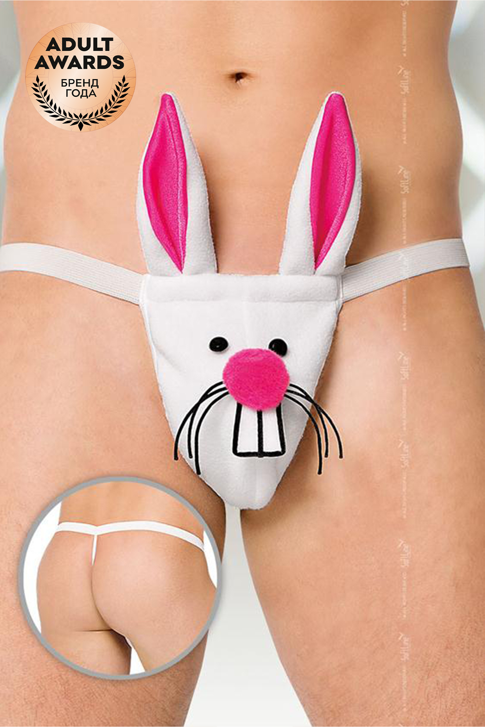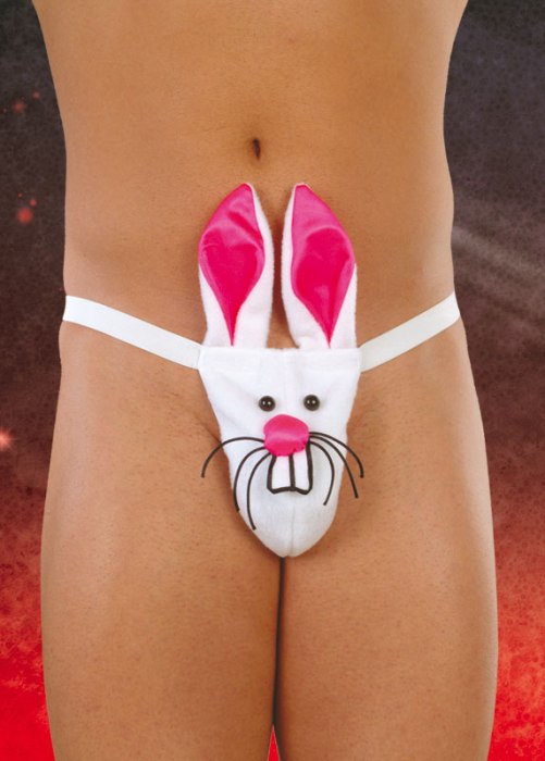 Стринги мужские белого цвета,выполнены в виде кролика с поднятыми ушками Материал 100% полиэстер