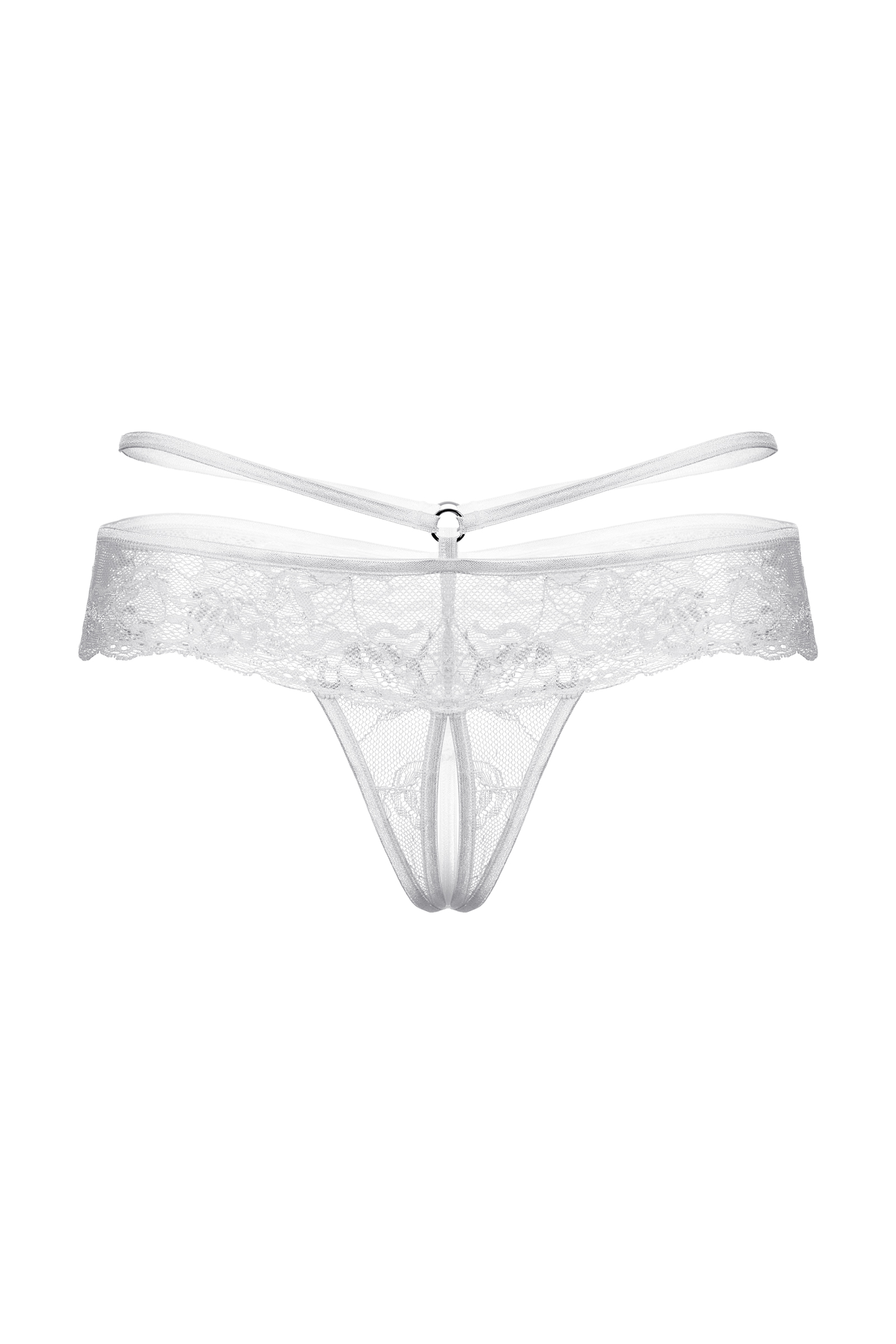 Кружевные стринги с открытым доступом. Оригинальное сочетание нежного кружева и переплетения тесьмы.