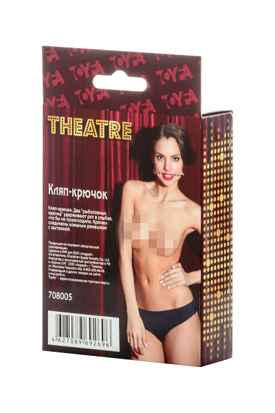Кляп-крючок из коллекции аксессуаров Theatre выполнен из прочного металла. Два крюка будут фиксировать рот в состоянии улыбки, они соединены между собой кожаным ремешком, который можно отрегулировать по размеру.