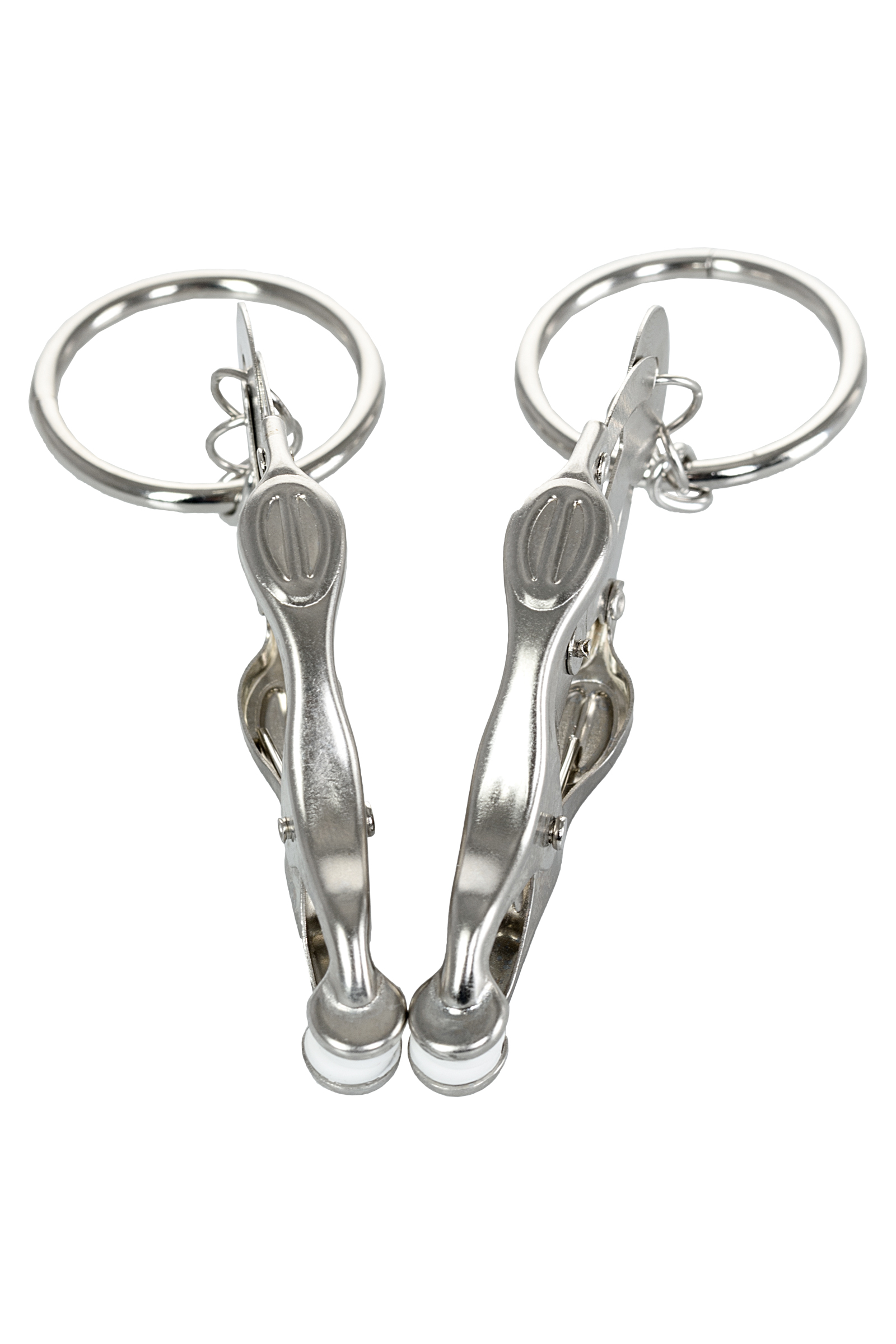 Зажимы для сосков с пружинным механизмом. Эта конструкция одна из самых жестких, но позволяет разнообразить игру: на кольцам можно подвесить дополнительные грузы или украшения. Все зависит от ваших желаний!